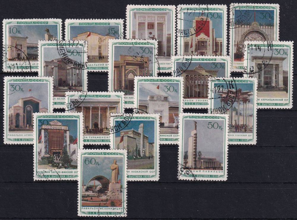 1940, SSSR, 0763/0779, Všesvazová zemědělská výstava, Moskva ⊙