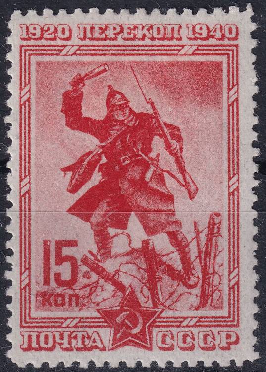 1940, SSSR, 0781A, 20. výročí dobytí pevninské šíje u Prekopu: Vrhání granátu ✶