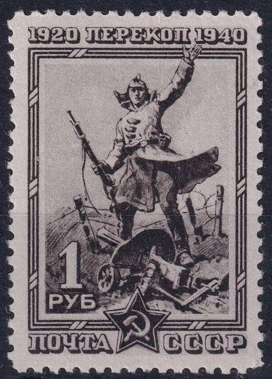 1940, SSSR, 0785A, 20. výročí dobytí pevninské šíje u Prekopu: Rudoarmějec se zbraní ✶