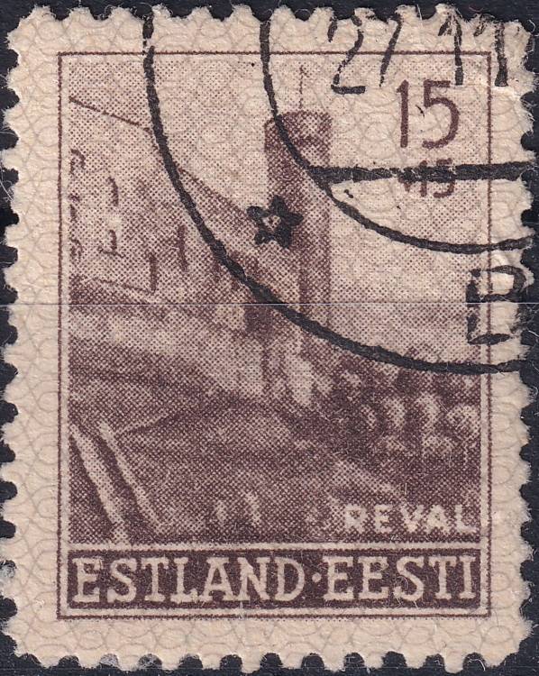 1941, Estonsko, 4, Výplatní známky: Obnova Estonska - Věž "Velký Hermann" v Revalu (Tallinnu) ⊙
