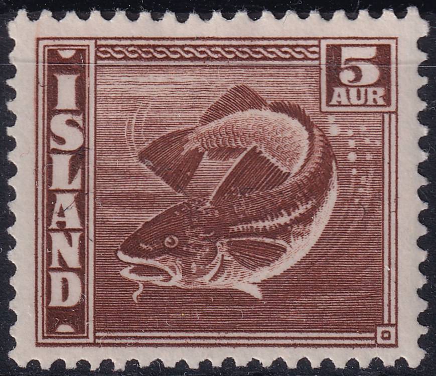1941, Island, 0210A, Výplatní známka: Typické zemské motivy: Gadus morrhua, ✶