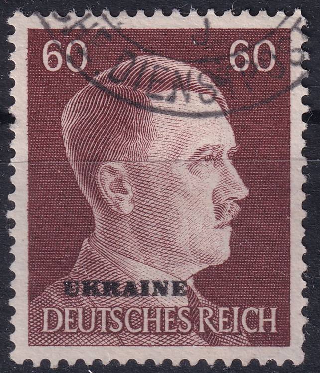 • přetisk UKRAINE na známce Deutsches Reichu 797