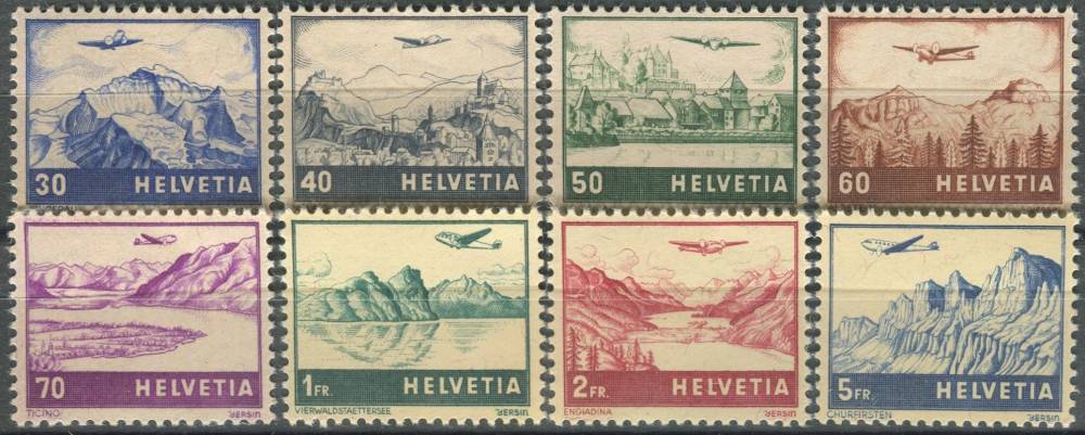 1941, Švýcarsko, 0387/0394, Letecké známky: Letadlo nad krajinou ∗∗