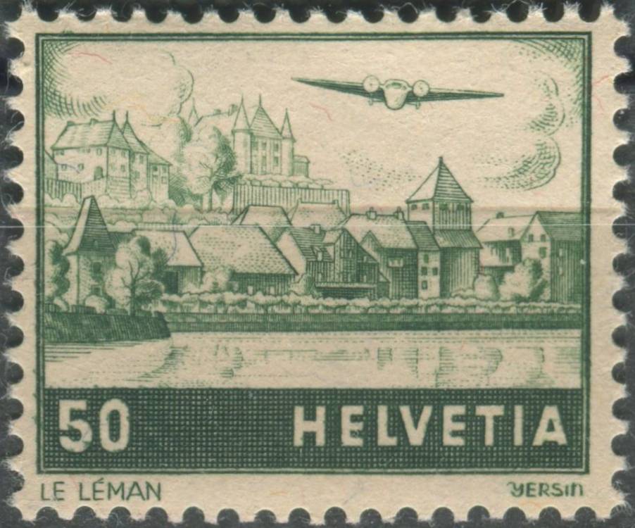 1941, Švýcarsko, 0389, Letecká známka: Letadlo nad krajinou - Genfer See ∗∗