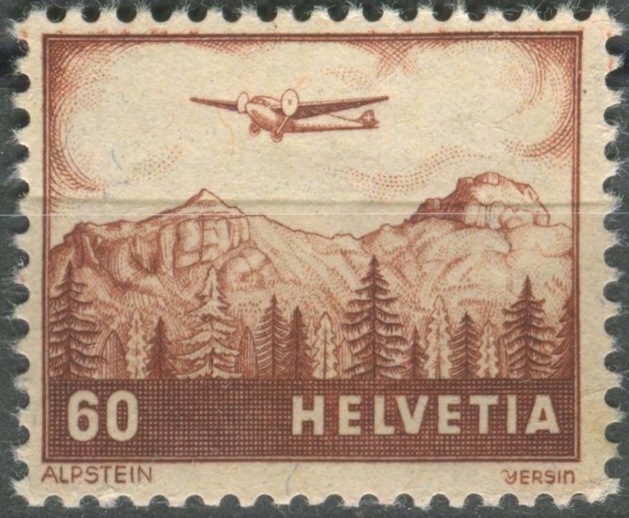 1941, Švýcarsko, 0390, Letecká známka: Letadlo nad krajinou - Alpstein ∗∗