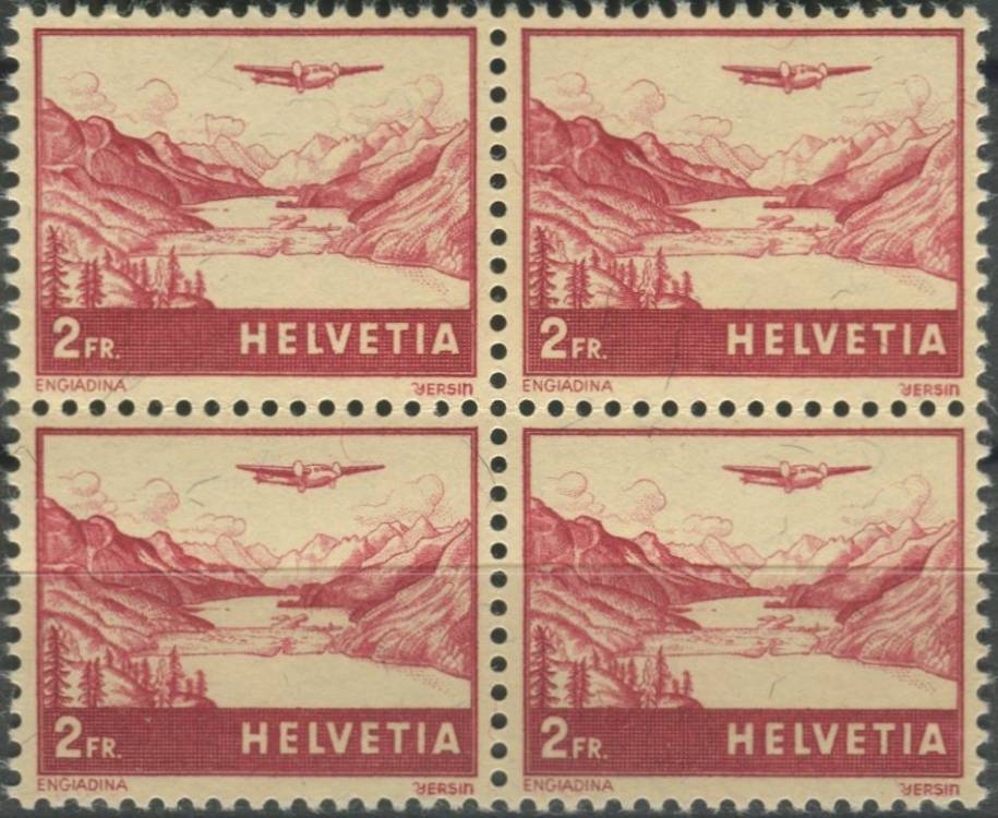 1941, Švýcarsko, 0393, Letecká známka: Letadlo nad krajinou - Engadin ∗∗ ⊞