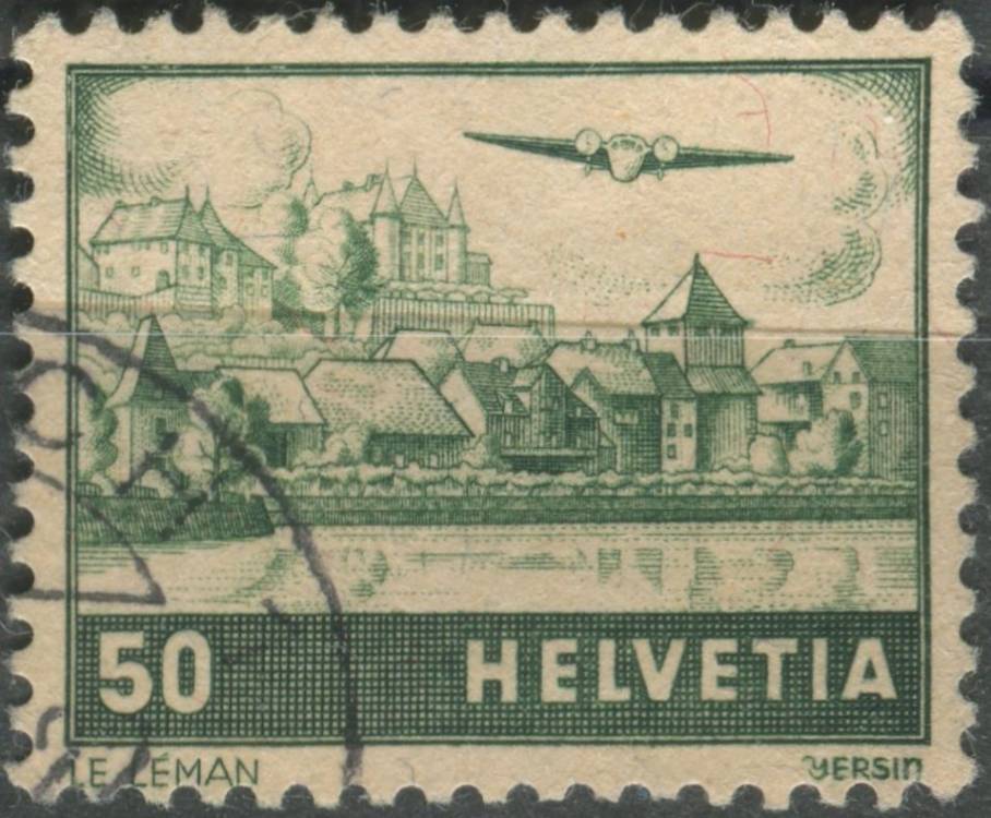 1941, Švýcarsko, 0389, Letecká známka: Letadlo nad krajinou - Genfer See ⊙
