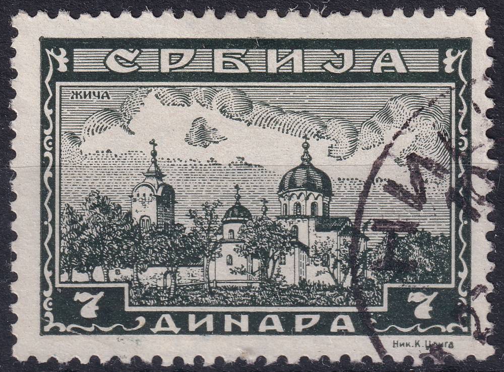 1942, Obsazená území Německem 1939/45 (Srbsko), 079, Výplatní známky: Srbské kláštery - Žiča ⊙