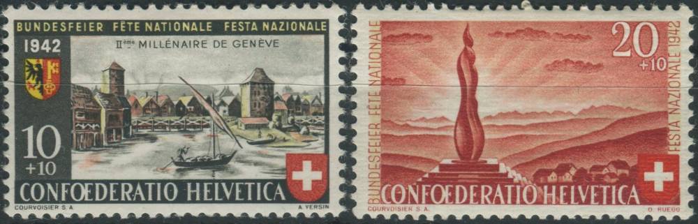 1942, Švýcarsko, 0408/0409, "Pro Patria": 200 let města Ženevy ∗