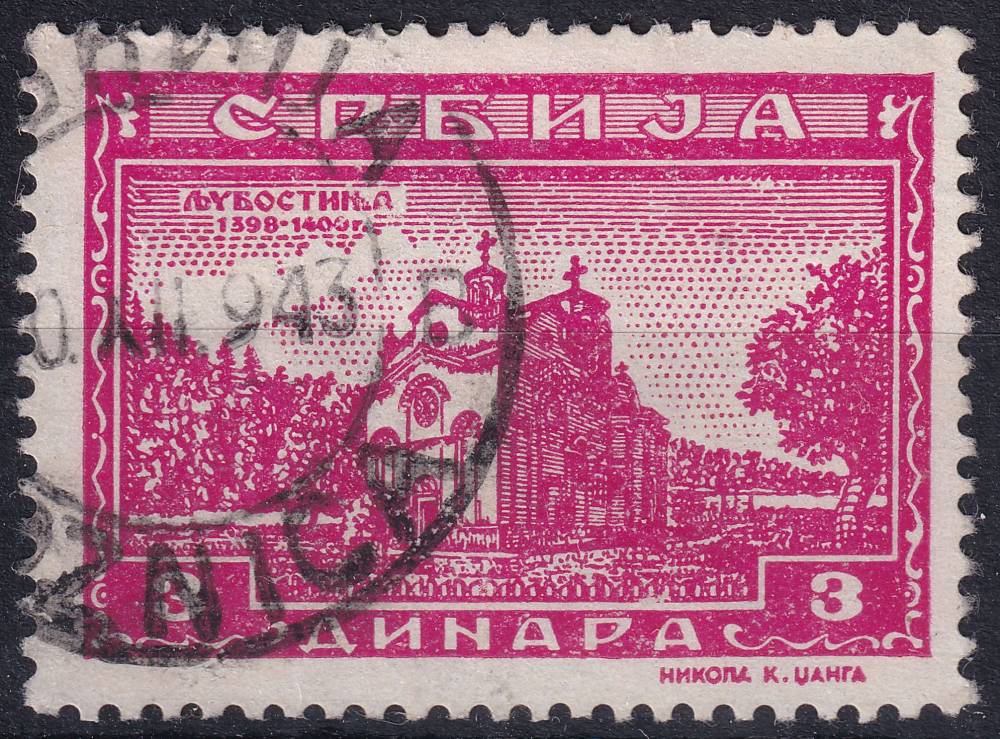 1943, Obsazená území Německem 1939/45 (Srbsko), 077, Výplatní známky: Srbské kláštery - Ljubostinja ⊙