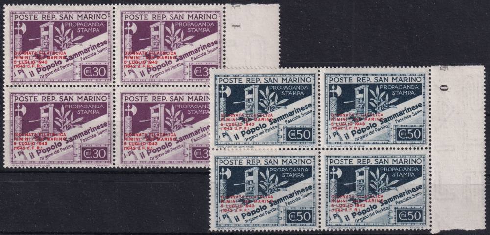 1943, San Marino, 0269/0270, Den poštovní známky ✶✶ ⊞ o P
