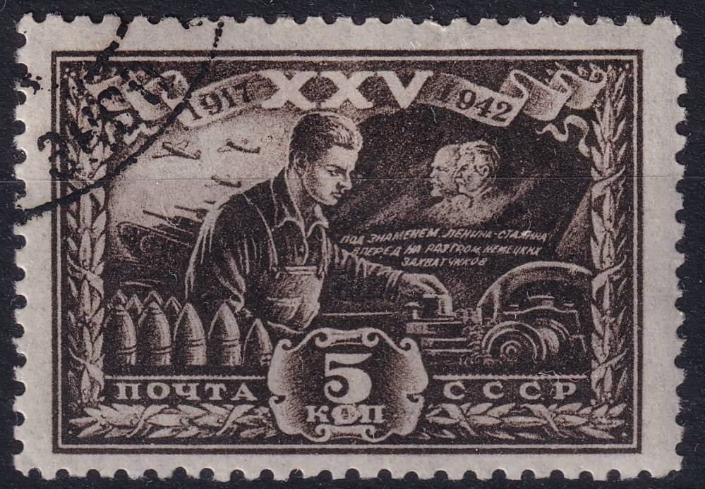 1943, SSSR, 0847xb, 25. výročí Říjnové revoluce: Dělník v muniční továrně ⊙