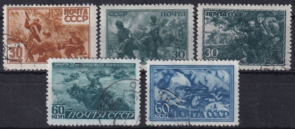 1943, SSSR, 0865/0869, "Velká Vlastenecká válka 1941 - 1945" (III): Bojové scény ⊙