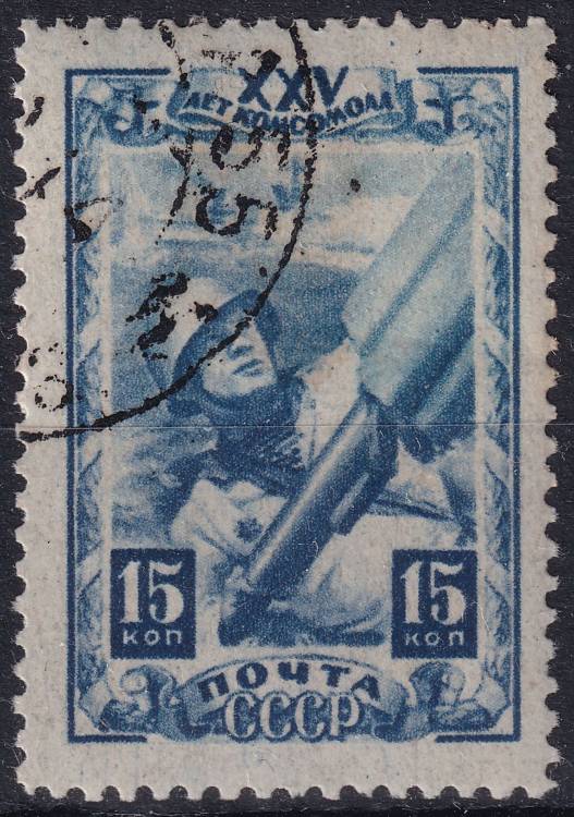 1943, SSSR, 0885xr, 25 let Komunistického svazu mládeže Komsomol: Námořní dělostřelectvo ⊙
