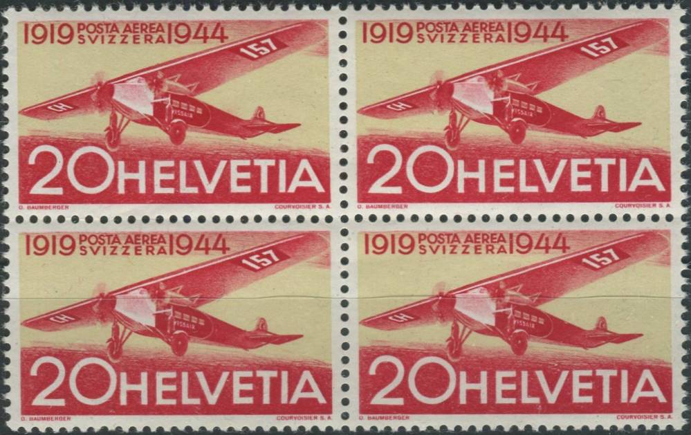 1944, Švýcarsko, 0436, Letecká známka: 25 let Švýcarské letecké pošty (I): Fokker FVII 3 m ∗∗ ⊞