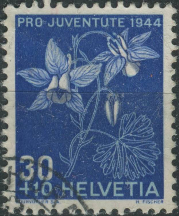 1944, Švýcarsko, 0442, "Pro Juventute": Květiny - Aquilegia alpina ⊙