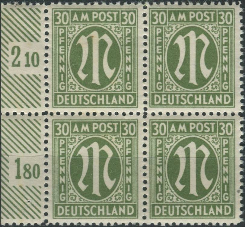 1945, Americká a Britská okupační zóna, 029p, Výplatní známka: "M" v oválu ∗∗ ⊞