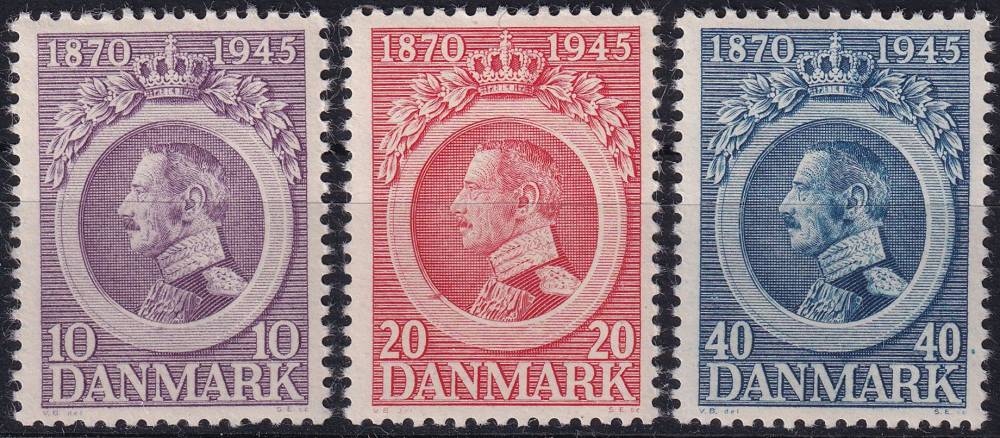 1945, Dánsko, 0286/0288, 75. výročí narození krále Kristiána X. ✶✶