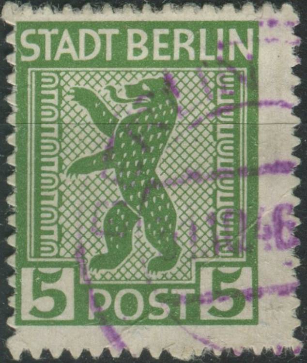 1945, Okupační zóna Berlín a Braniborsko, 1AA, Výplatní známka: Berlínský medvěd ⊙