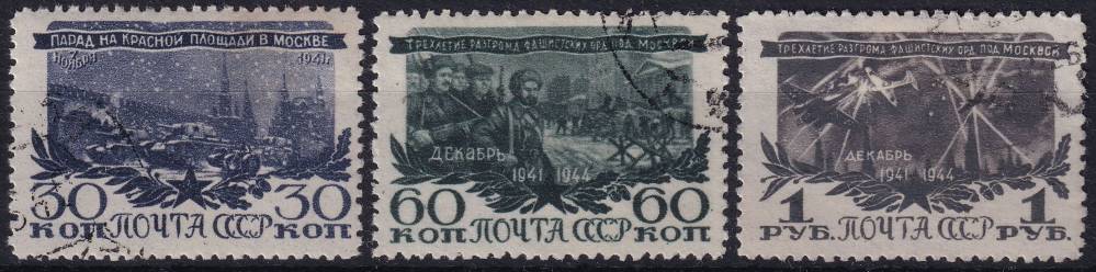 1945, SSSR, 0960/0962x, 3. výročí vítězství u Moskvy ⊙