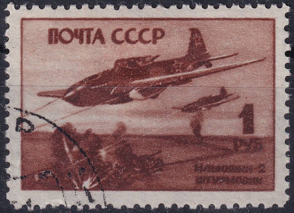 1945, SSSR, 0976, Den letectva (I): Sovětská bojová letadla a letecké bojové scény - Iljušin II-2 ⊙