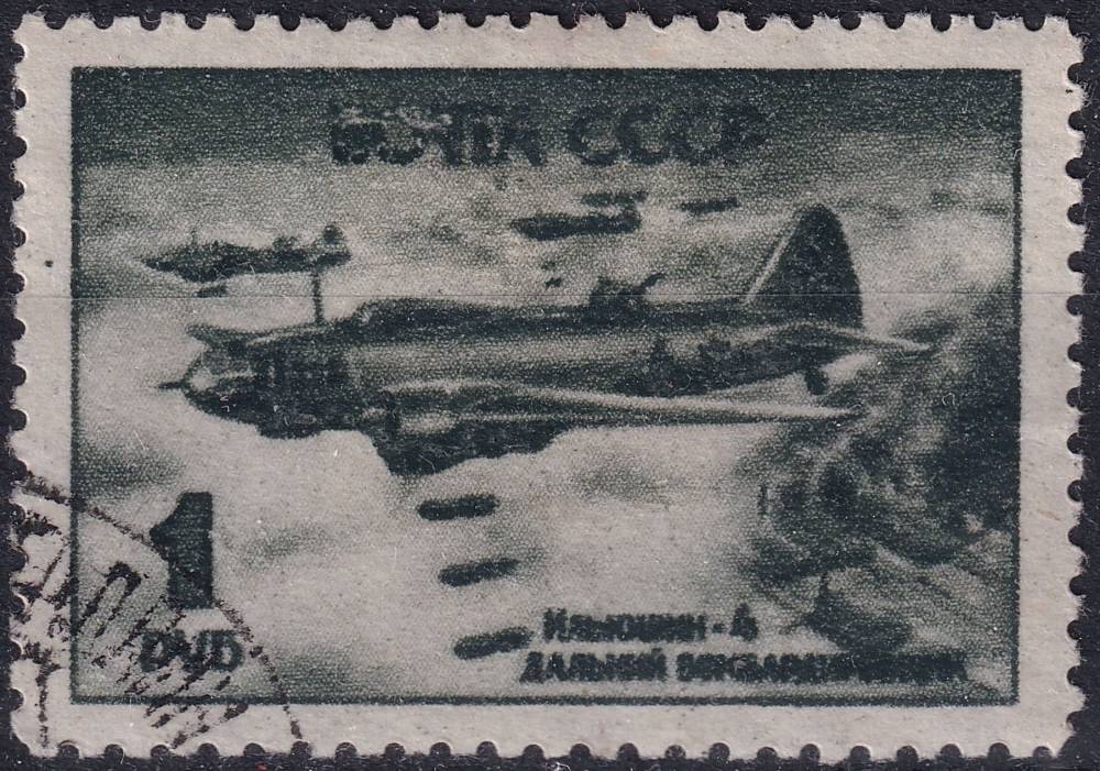 1945, SSSR, 0977, Den letectva (I): Sovětská bojová letadla a letecké bojové scény - Iljušin II-4 ⊙