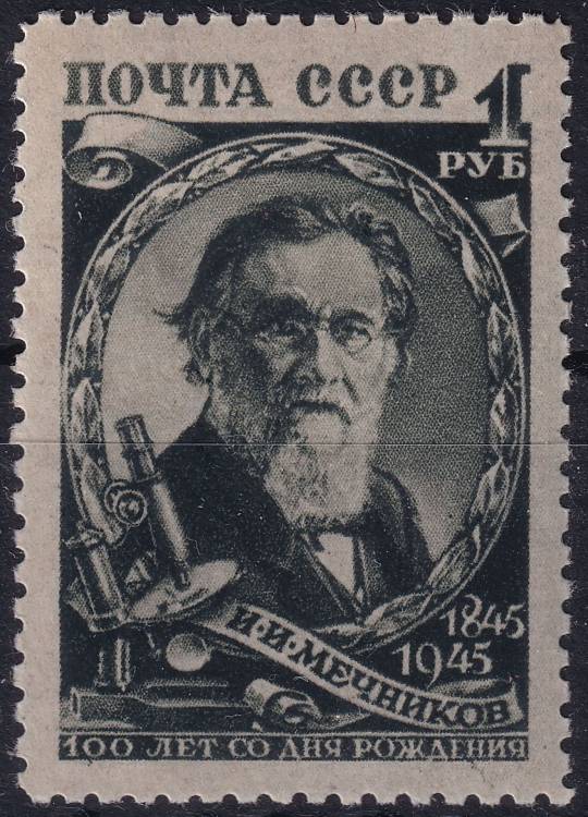 1945, SSSR, 0991, 100. výročí narození Ilji Mečnikova ✶