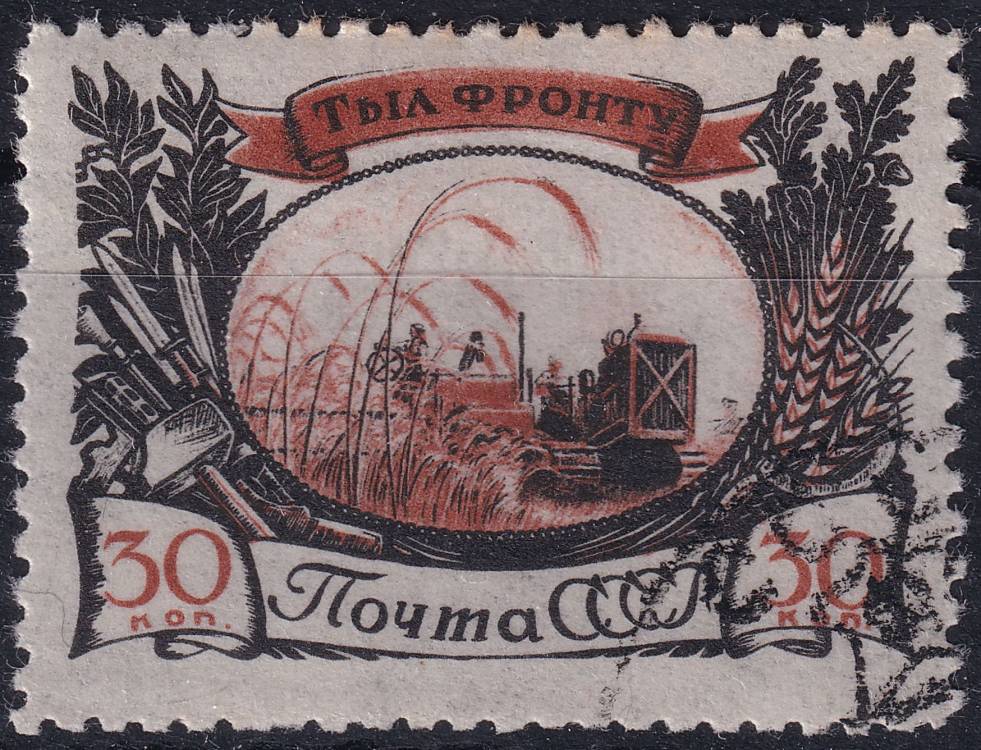 1945, SSSR, 1000, "Velká vlastenecká válka 1941 - 1945" (V): Pomoc zázemí frontě - sklizeň obilí ⊙