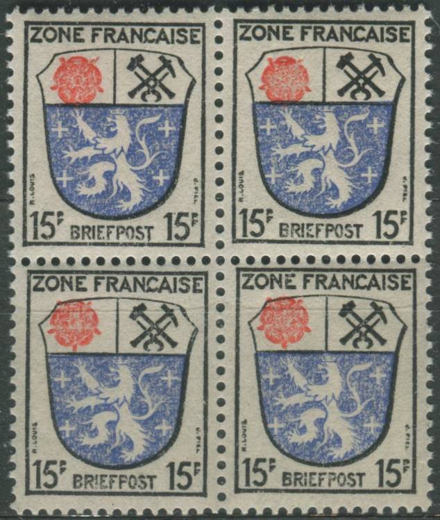 1946, Francouzská okupační zóna (Všeobecná vydání), 07, Výplatní známka: Znaky zemí francouzské zóny - Sársko ∗∗ ⊞