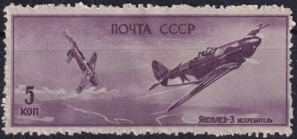 1946, SSSR, 1014, Den letectva (II): Jakovlev Jak-3 střílí na Messerschmitta Me-109 ✶