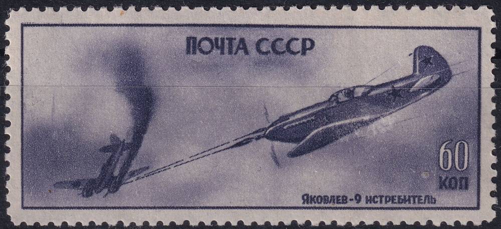 1946, SSSR, 1022, Den letectva (II): Jakovlev Jak-9 střílí na Junkerse Ju 88 ✶