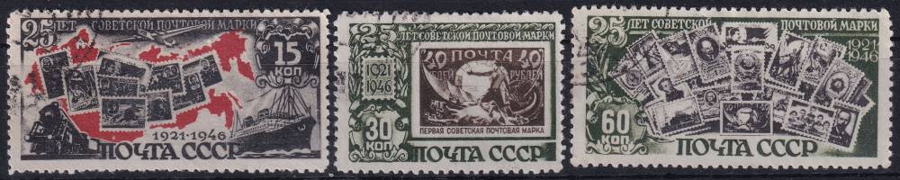 1946, SSSR, 1071/1073A, 25 let sovětských poštovních známek (I) ⊙