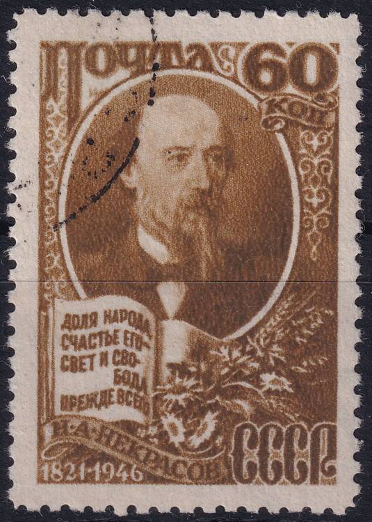 1946, SSSR, 1076, 125. výročí narození Nikolaje Někrasova ⊙