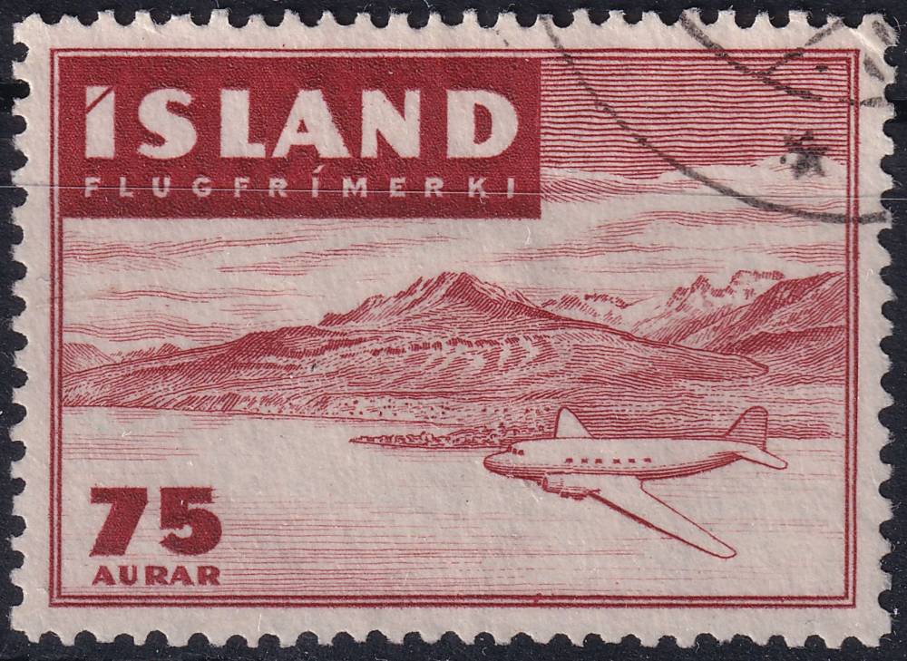 1947, Island, 0243, Letecká známka: Douglas DC - 3 nad Eyjafjordurem ⊙