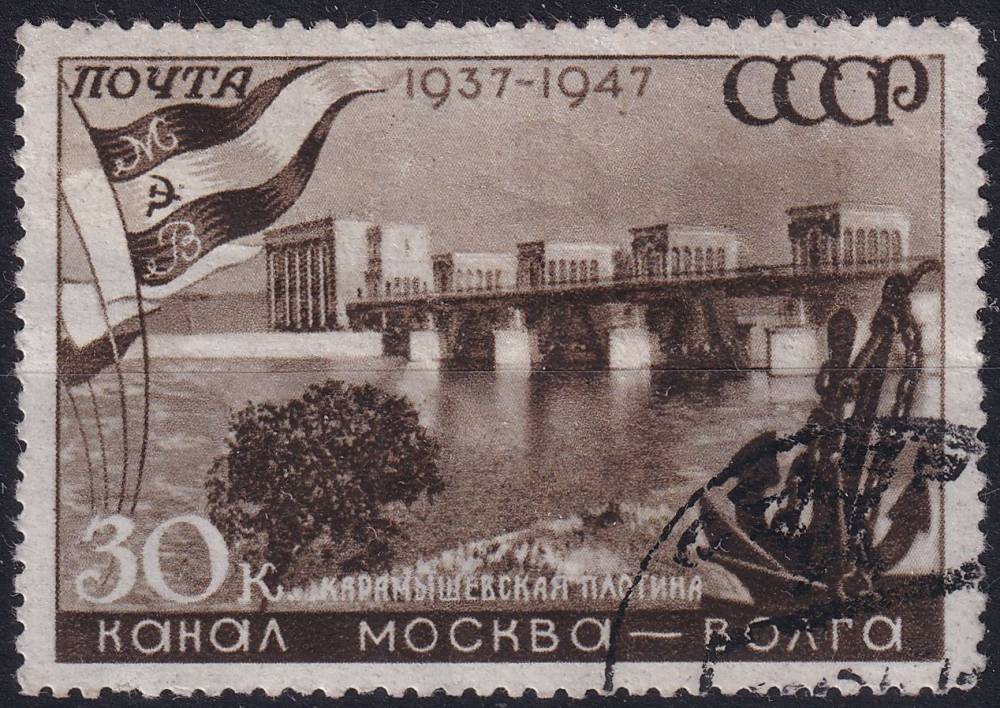 1947, SSSR, 1132x, 10. výročí zahájení provozu Kanálu Moskva-Volha: Plavební komora u Karamyševa ⊙
