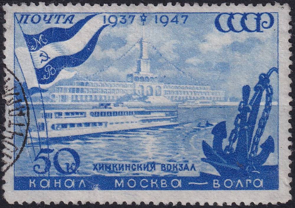 1947, SSSR, 1134x, 10. výročí zahájení provozu Kanálu Moskva-Volha: Říční přístav v Chimky ⊙