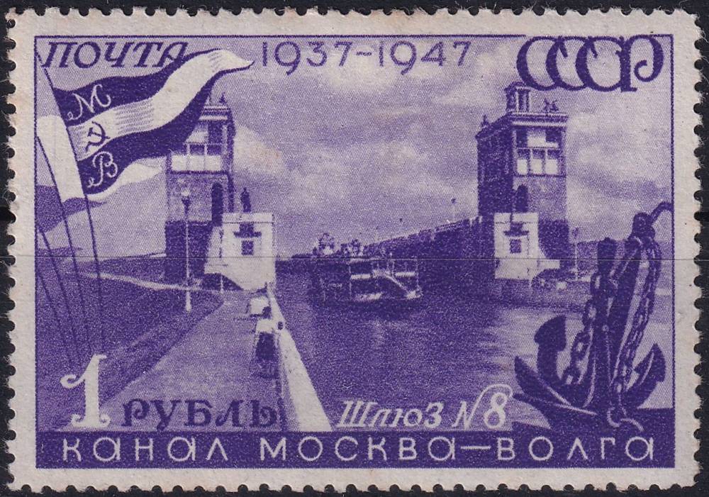 1947, SSSR, 1136x, 10. výročí zahájení provozu Kanálu Moskva-Volha: Plavební komora č. 8 ✶✶