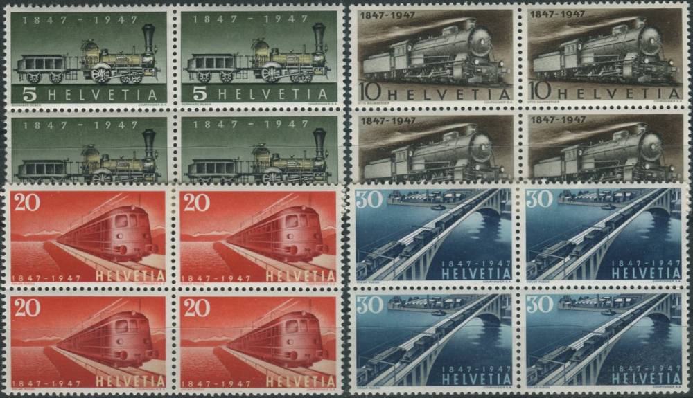1947, Švýcarsko, 0484/0487, 100 let Švýcarské železnice ∗∗ ⊞