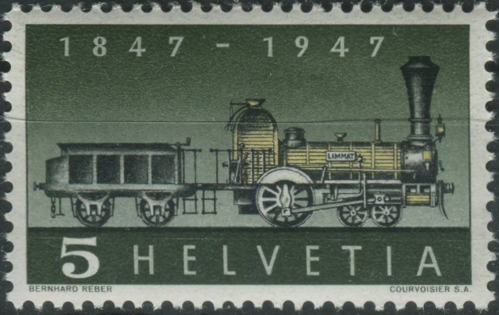1947, Švýcarsko, 0484, 100 let Švýcarské železnice - První parní lokomotiva ∗∗