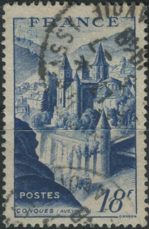 1948, Francie, 0824, Výplatní známka: Stavby - Opatství Conques ⊙