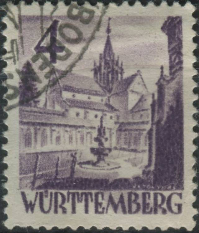 1948, Francouzská okupační zóna (Württembersko-Hohenzollernsko), 29VI, Výplatní známka: Obrázky z Württemberska-Hohenzollernska (III): Klášter Bebenhausen ⊙