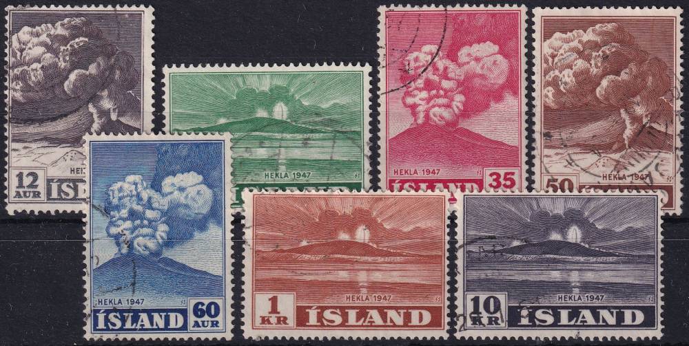 1948, Island, 0247/0253, Výplatní známky: Výbuch sopky Hekla v roce 1947 ⊙