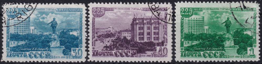 1948, SSSR, 1298/1300A, 225 let Swerdlovska (Jekatěrinburgu) ⊙