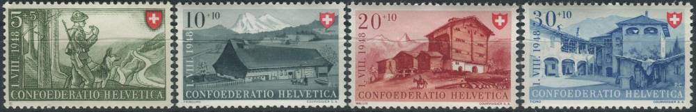 1948, Švýcarsko, 0508/0511, "Pro Patria": Povolání; Venkovské domy ∗∗