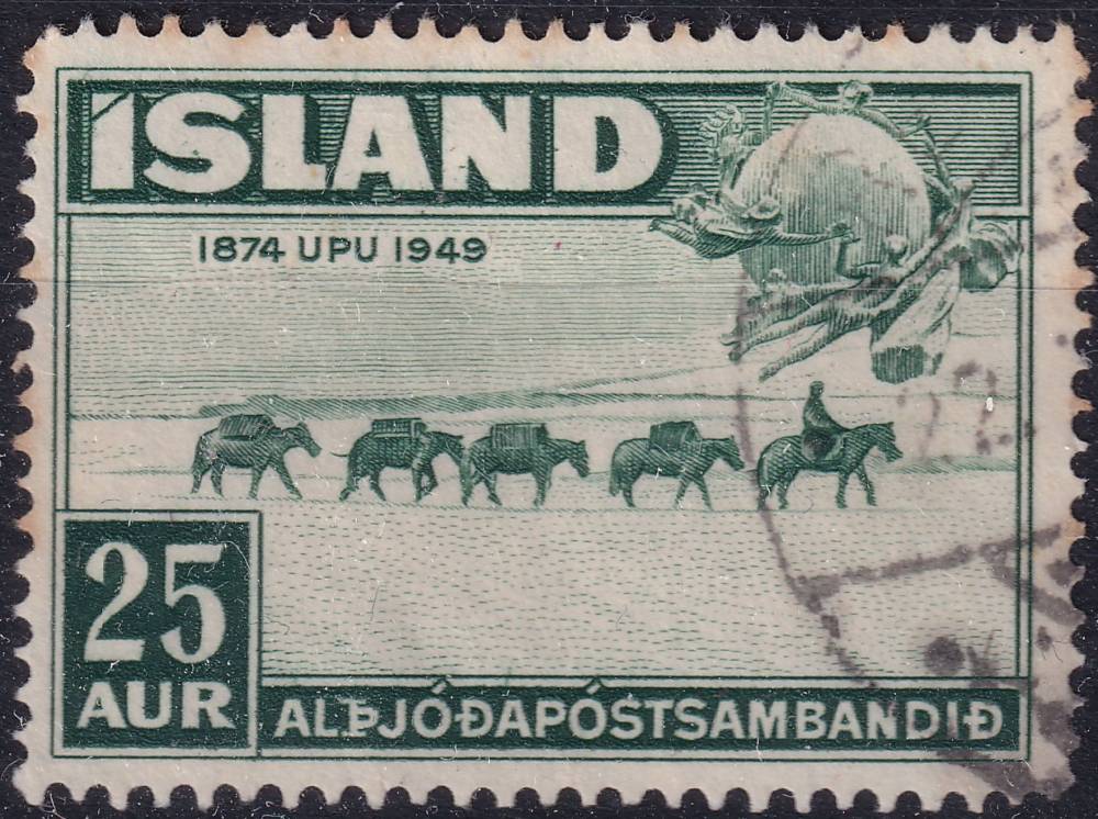 1949, Island, 0259, 75 let Světové poštovní unie (UPU): Koňská pošta ⊙