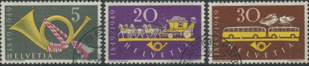 1949, Švýcarsko, 0519/0521, 100 let Spolkové pošty ⊙