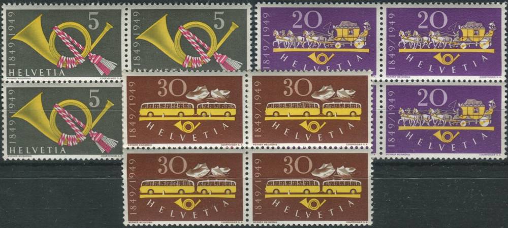 1949, Švýcarsko, 0519/0521, 100 let Spolkové pošty ∗∗ ⊞