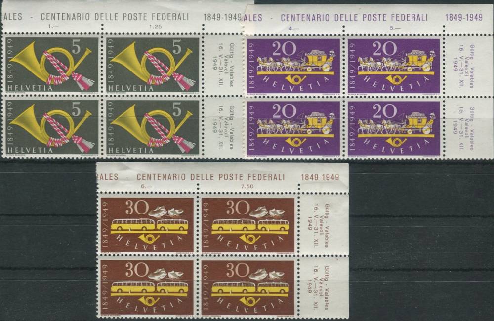 1949, Švýcarsko, 0519/0521p, 100 let Spolkové pošty ∗∗ ⊞ P H