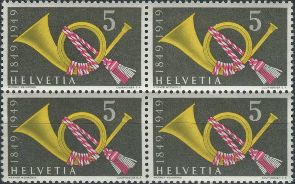 1949, Švýcarsko, 0519, 100 let Spolkové pošty: Poštovní trubka ∗∗ ⊞
