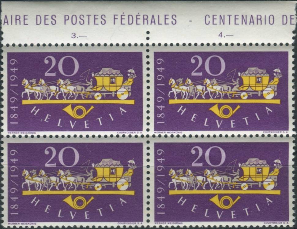 1949, Švýcarsko, 0520p, 100 let Spolkové pošty: Poštovní dostavník ∗∗ ⊞ o H
